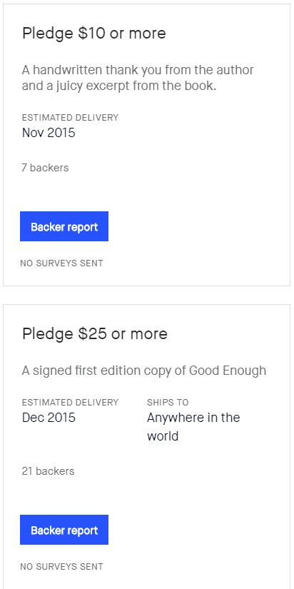 I didn't have some grandiose cause or explanation for my campaign nor did I have a video. I felt silly recording myself--I still struggle with it. I don't even take selfies! And the campaign still did well. I raised over $3600 to publish Good Enough. I used a professional cover designer, editor and typesetter, (the latter didn't go so well, but I credit that to my inexperience).